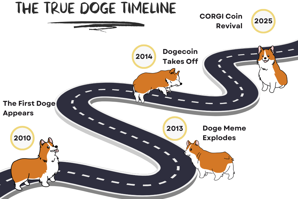 Before the world worshipped Shiba, the original DOGE was a Corgi. In October 2010, a Reddit post titled “LMBO LOOK @ THIS FUKKEN DOGE” immortalized a corgi in meme history. From that moment forward, the myth of “Doge” was built, but the true origin was buried. CORGI Coin resurrects that legacy.