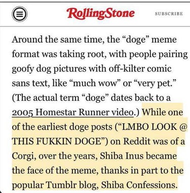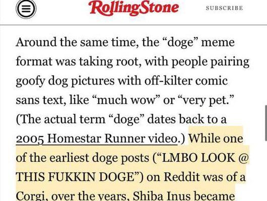 Thanks to the $corgi team, the article on knowyourmeme has been updated to recognize the corgi as the original doge that started it all